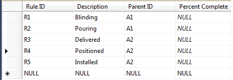 - The column Percent Complete stands in the Rules_Of_Credit table and the primary key of the table is the Rule ID column.