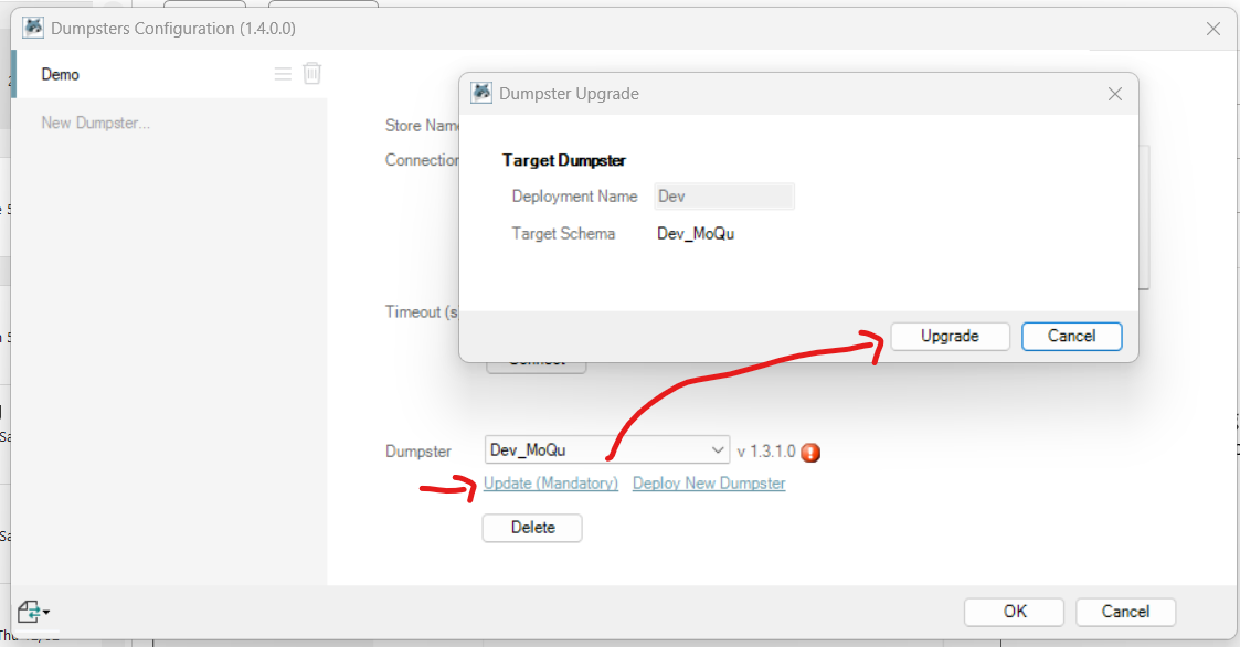 - Click the Update link to open the Upgrade dialogue